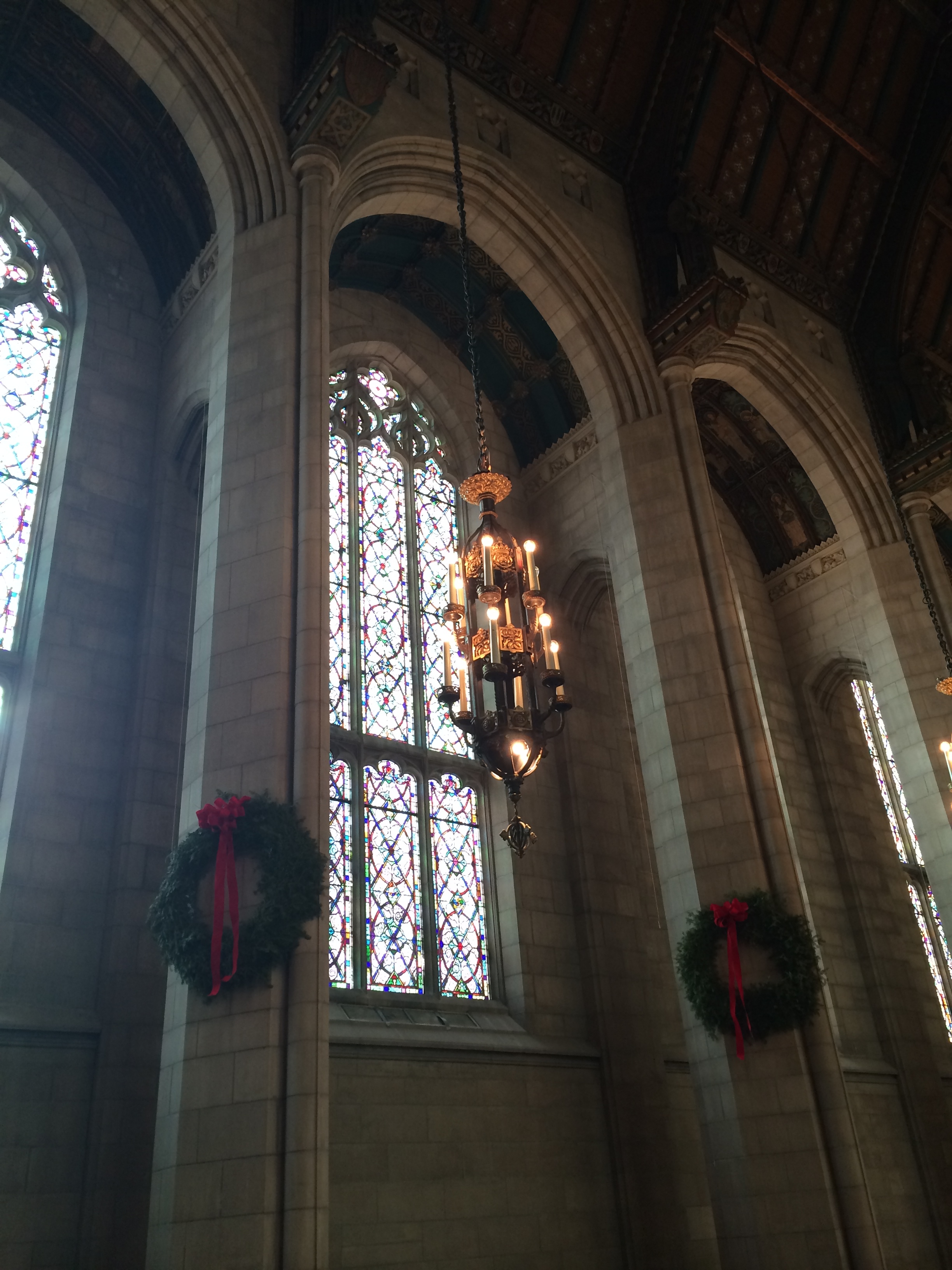The Miracle Mile after Christmas Sale afforded me a new coat and I gave my old coat to the 4th Pres. Church (pictured here) who was having a coat drive! It was meant to be. The church is classic gothic and just beautiful. I posted exterior shots in the last post. Here are interior shots – all decked out for the holiday.
