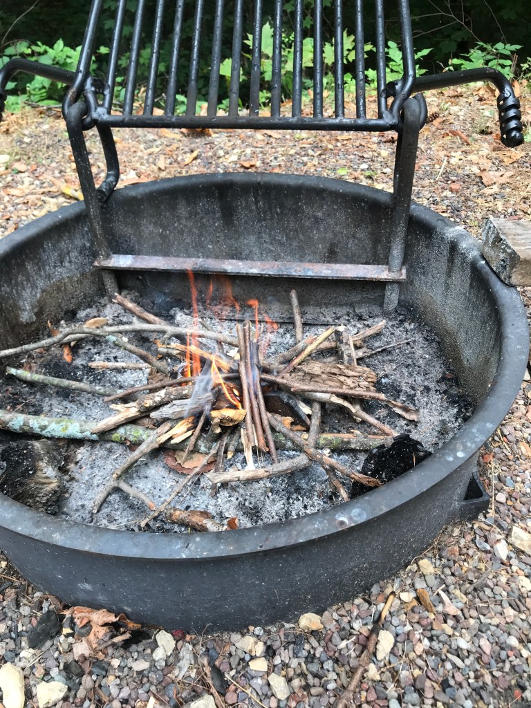 And of course, here in the north, the maple leaves are starting to turn gold and red. Just a few are falling, but soon, the forrest will look like fire as all the trees catch up. In this middling season of not quite summer and not yet fall, I see mushrooms too. The red ones are especially pretty, whatever variety they are. And of course it’s time for campfires. I don’t understand how people can have campfires in summer when it’s so warm. This is my first – EVER! You know I’m not a camper, I’m a glamper, lol.