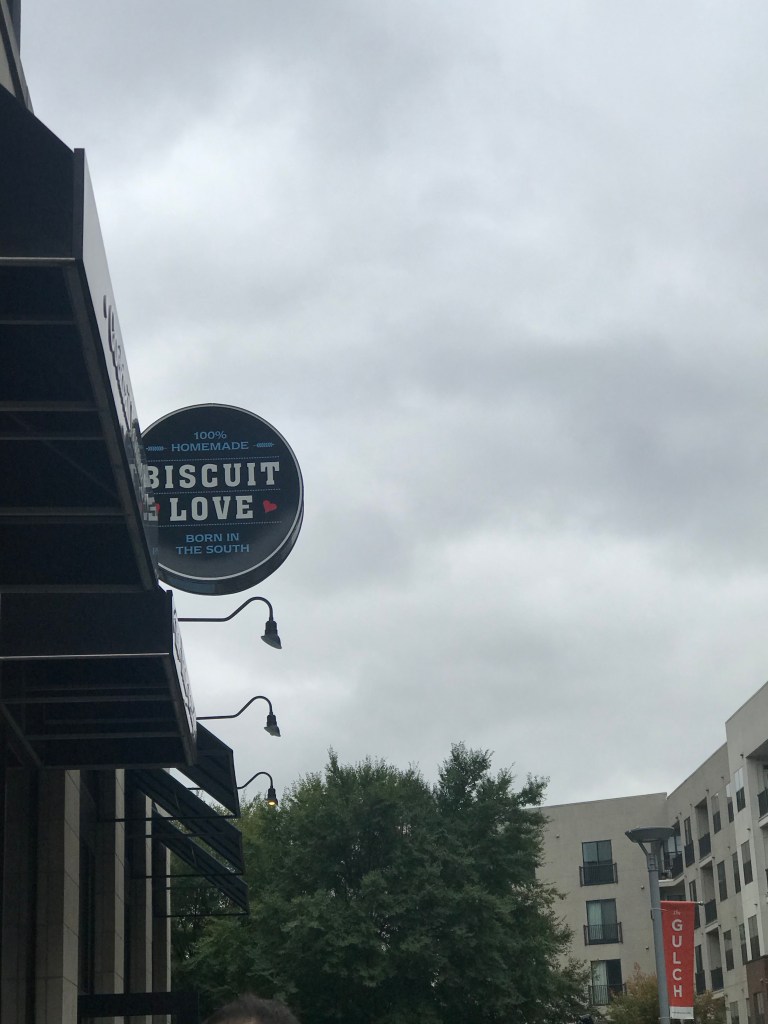 I can be much more upbeat about the food I tried. Now, being a vegan can be tricky in a place like Nashville where BBQ rules. But I found two absolutely delightful places that I can recommend. The first is called Biscuit Love. I went to the one in the Gultch neighborhood downtown on a Sunday when everyone and their mama was out eating. I drove by about 11:30 and there was a winding line. So I went and did something else and when I came back just before 1:00, the line was short. Good timing is everything.