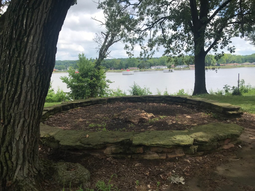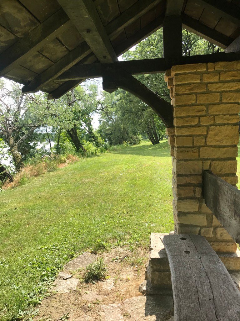 Before I got here, I spent nearly a week at Illini State Park in Marseilles, IL. What a wonderful place that is. It sits right on the Illinois River that provides cooling breezes. The town is on the other side of the river and makes for a convenient place to get necessities. The campground was built by the CCC in the 1930s and has touches of the workers in some of its features. The Army Corps operates locks on the river and I suspect this was an Army Corps campground at one time. The sites are level and widely dispersed. Only electric hook ups are offered.