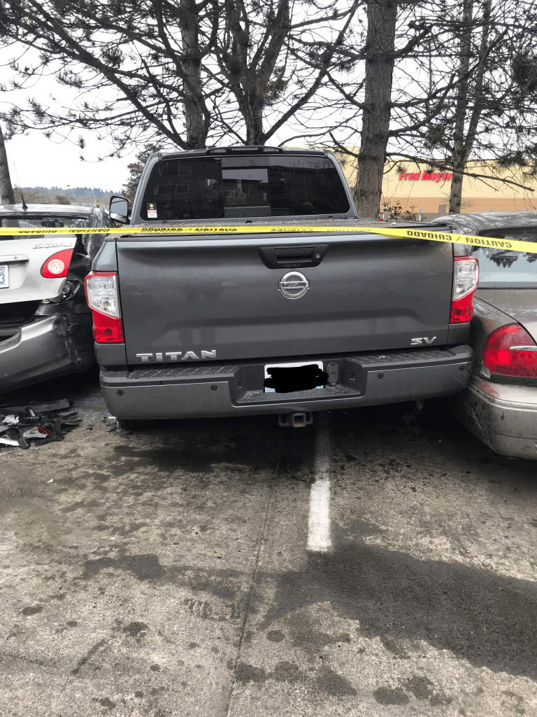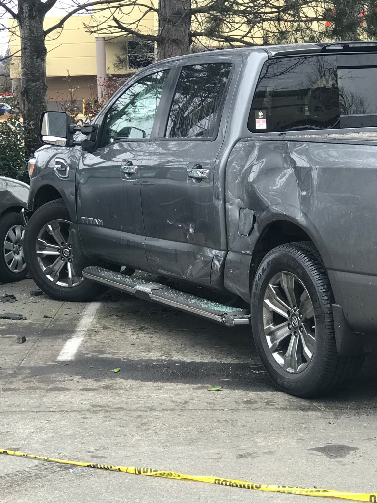 - My truck has been hit twice in the apartment building parking lot. The first time was a hit and run that did extensive damage to a tail light and rear fender. The second was a FREAK accident. A guy fleeing the police drove into our parking lot doing 100mph. Our lot has an elevation from the street level and the entryway is inclined. His car went airborne and when it finally came down it plowed into several cars, flipped, and slid a 100 feet. He walked away from the accident (in handcuffs) but seven vehicles were damaged in a chain reaction. I was #6 and the five before me were totaled. Seems that my truck is fixable and won’t be totaled. I’ll be without my truck for about a month. But at least it’s coming back to me.