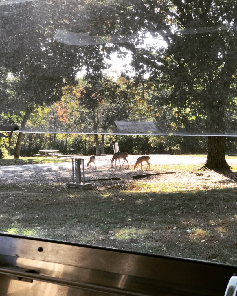 I left Chicago and spent a month in Kansas City. I had a wonderful time visiting friends and family, seeing sights, and enjoying two wonderful campgrounds. I enjoy the quiet, lakefront setting at Bloomington East on Lake Clinton in Kansas. It’s only 45 minutes from south KC and since it is a Corps of Engineers park, it’s the right price. Once they close down for the fall, I move over to a county park on the other side of KC at Lake Jacomo. I love to watch the deer come through the campground every afternoon when there are no crowds.