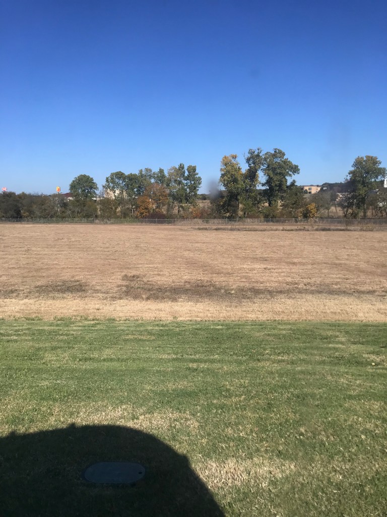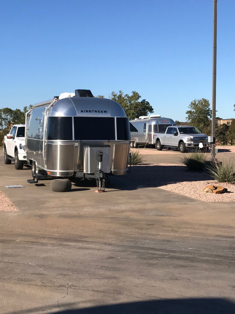 I’m here in Texas for the winter, enjoying lovely weather and interesting times. Right now I’m between Dallas and Waco for the month. I have a dentist and a good friend near Ft. Worth who are providing good teeth and good cheer, lol. I’m at what’s called an “Airstream Park” where people with Airstreams live in carport condos. That life is too rich for me, but it’s nice to be a visitor among fellow travelers who get what it’s like to love an Airstream. I’m staying in the cheap seats with a lovely view of the field behind me which is now brown for the winter. There is grass just outside my trailer, but the rest of my surround is concrete and gravel. That’s my shiny hiney casting a shadow, lol.