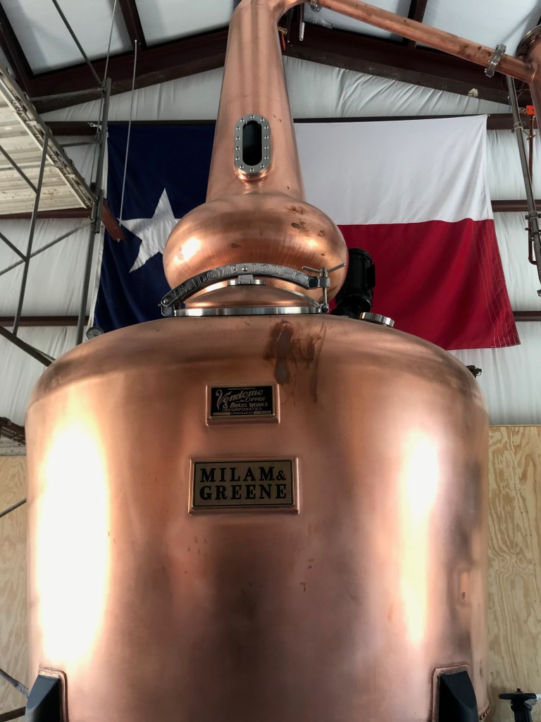Distilleries are really fun places to visit as long as you enjoy spirits. Some places have live music on the weekends. Some have events and bottling parties. Most have knowledgeable staff who want to share their own, unique, grain-to-glass story. After all, it is the craft part of the craft distillery that is its essence. Hearing the head distiller talk about how they take grains and make an aromatic spirit is pure artistry. Washington has an eco-grain growing program that certifies that farms are not polluting nearby waters because they are responsibly farming. Distillers try all kinds of variety in their cask wood using wine and beer barrels and aging them in the hot summer weather or in special drying warehouses. They play and they have fun. We are richer for it because we get to sample these sumptuous delights. At Milam & Greene in Blanco, they have a 1000 gallon still! At Still Austin, they have a three-story vertical still – somewhat unique! But the biggest one I’ve seen is over 1300 gallons at Woodinville in WA. Sorry, TX.
