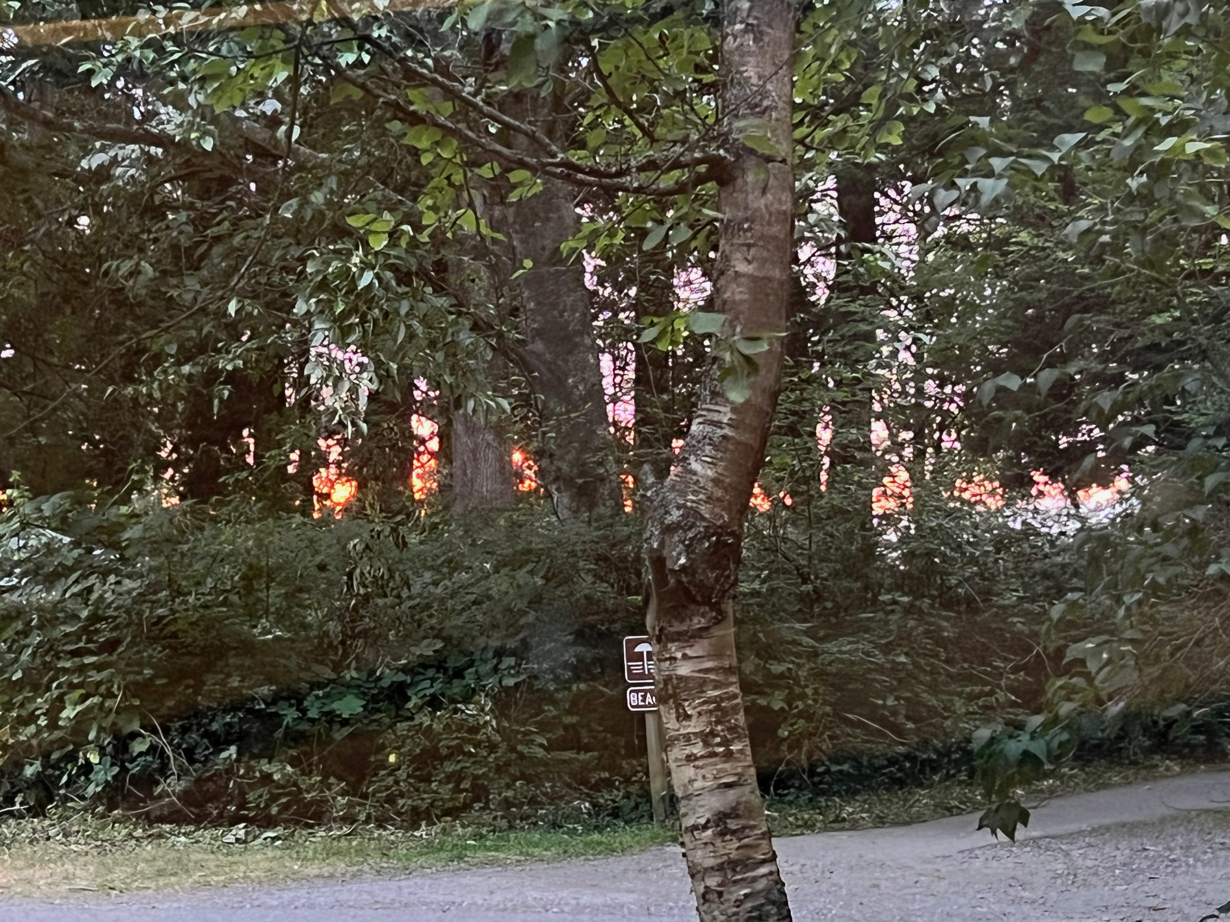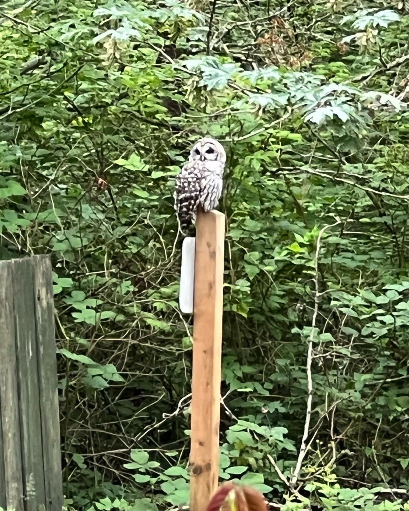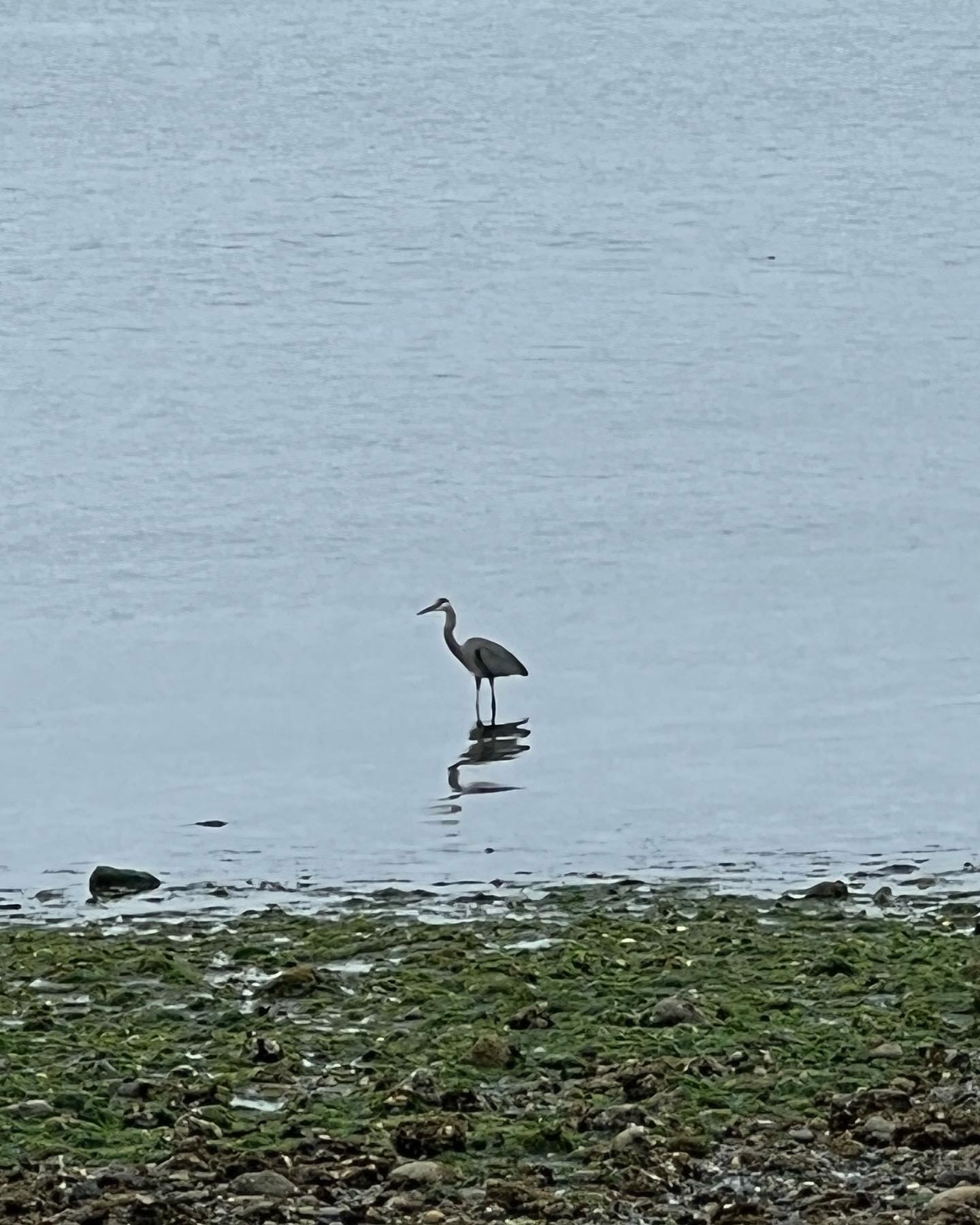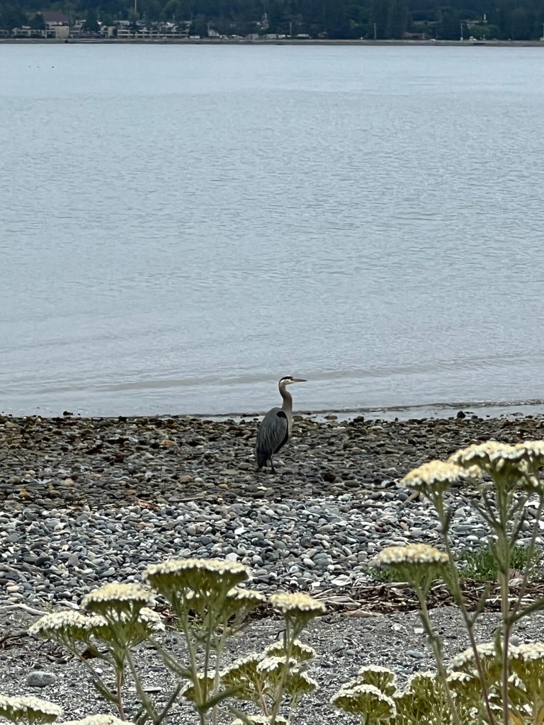 Through all the aches and effort, I remember I get to live in a forest and go to the beach every day. Who doesn’t want this life? I’ve had a few wildlife sightings. A bald eagle flew right in front of me at the beach on my first day. This weekend a big owl perched him/herself on a post and drew a crowd of onlookers – people and other birds that wanted that owl to leave! There are raccoons and bunnies as well as seagulls and great blue herons that I see at the beach. There are lots of other little birds in the park and they are delightful as they titter and chirp producing a mellifluous soundtrack to the campground.