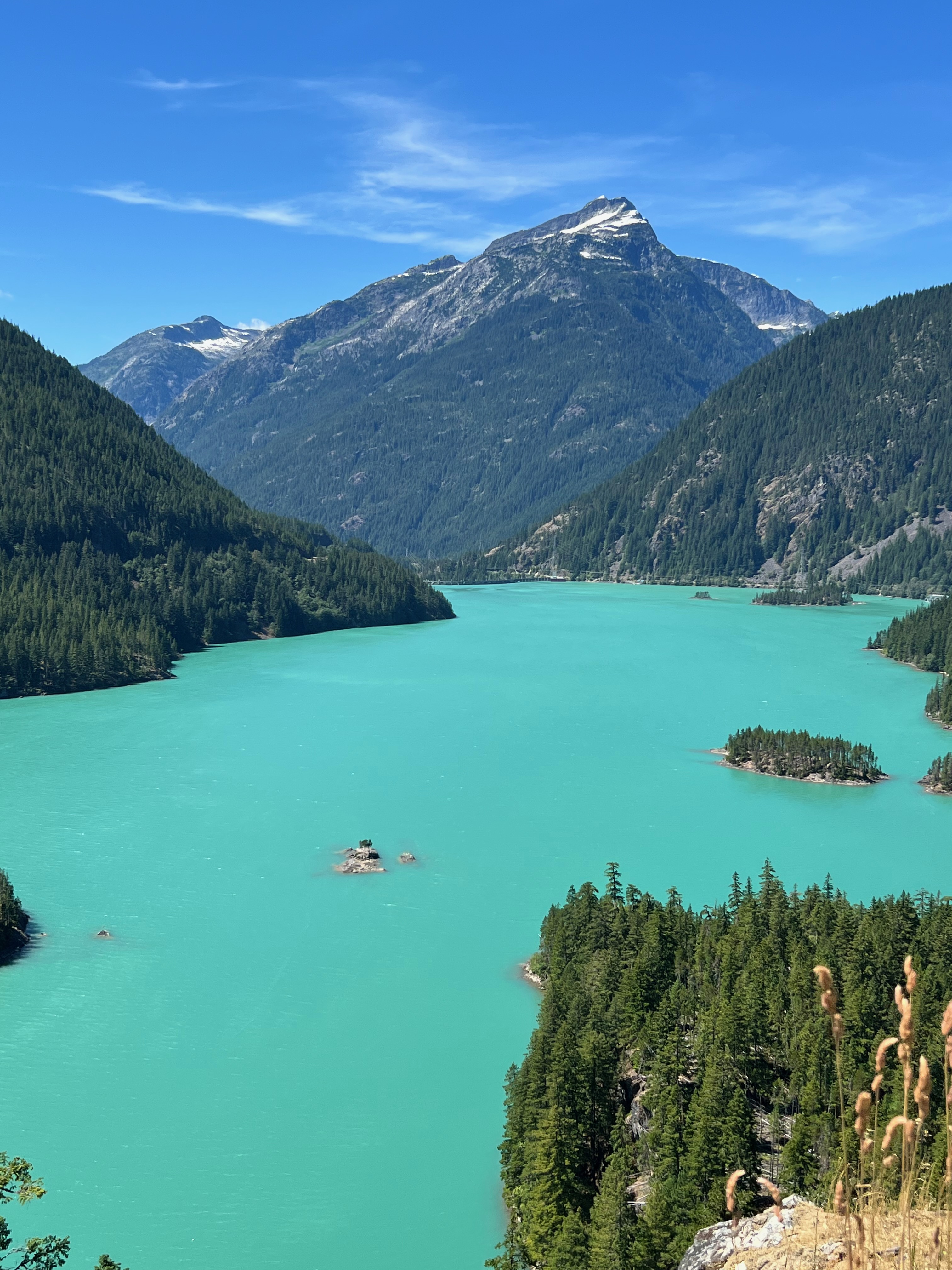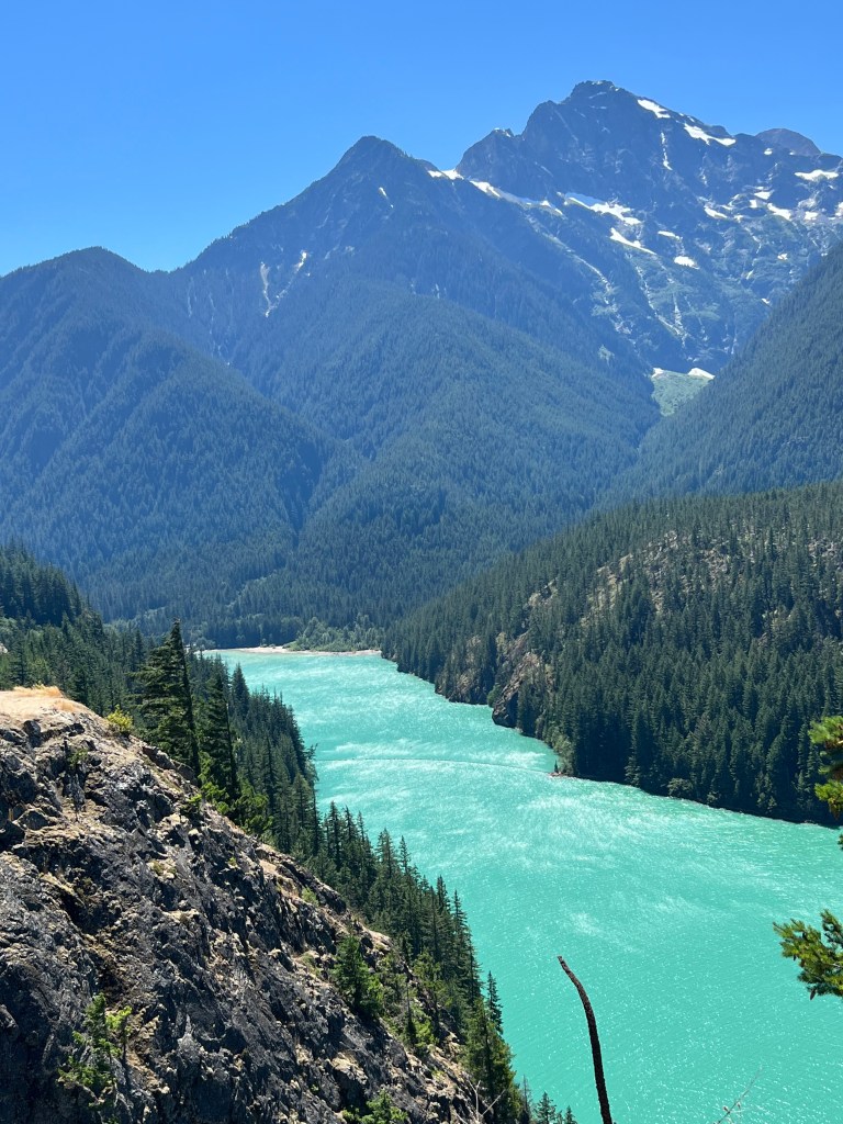 NCNP has its own jewels. The mountains and their glaciers send water cascading downhill and a series of three dams have created a hydroelectric power source for the entire Seattle region. Two of the dams are on natural lakes – Diablo and Ross, and the third is on the Skagit River. The lakes feed into the river and the snowpack melt feeds everything. The glaciers pummel the rock and jettison minerals that turn the water the distinctive turquoise color. Sorry, but the pictures don’t do it justice.