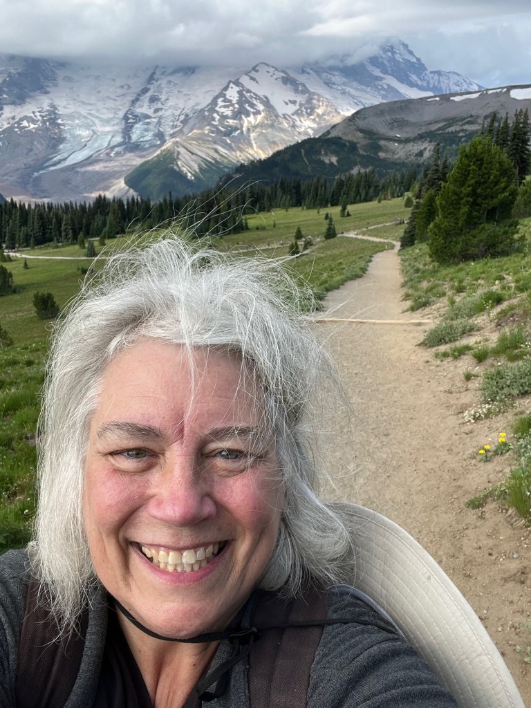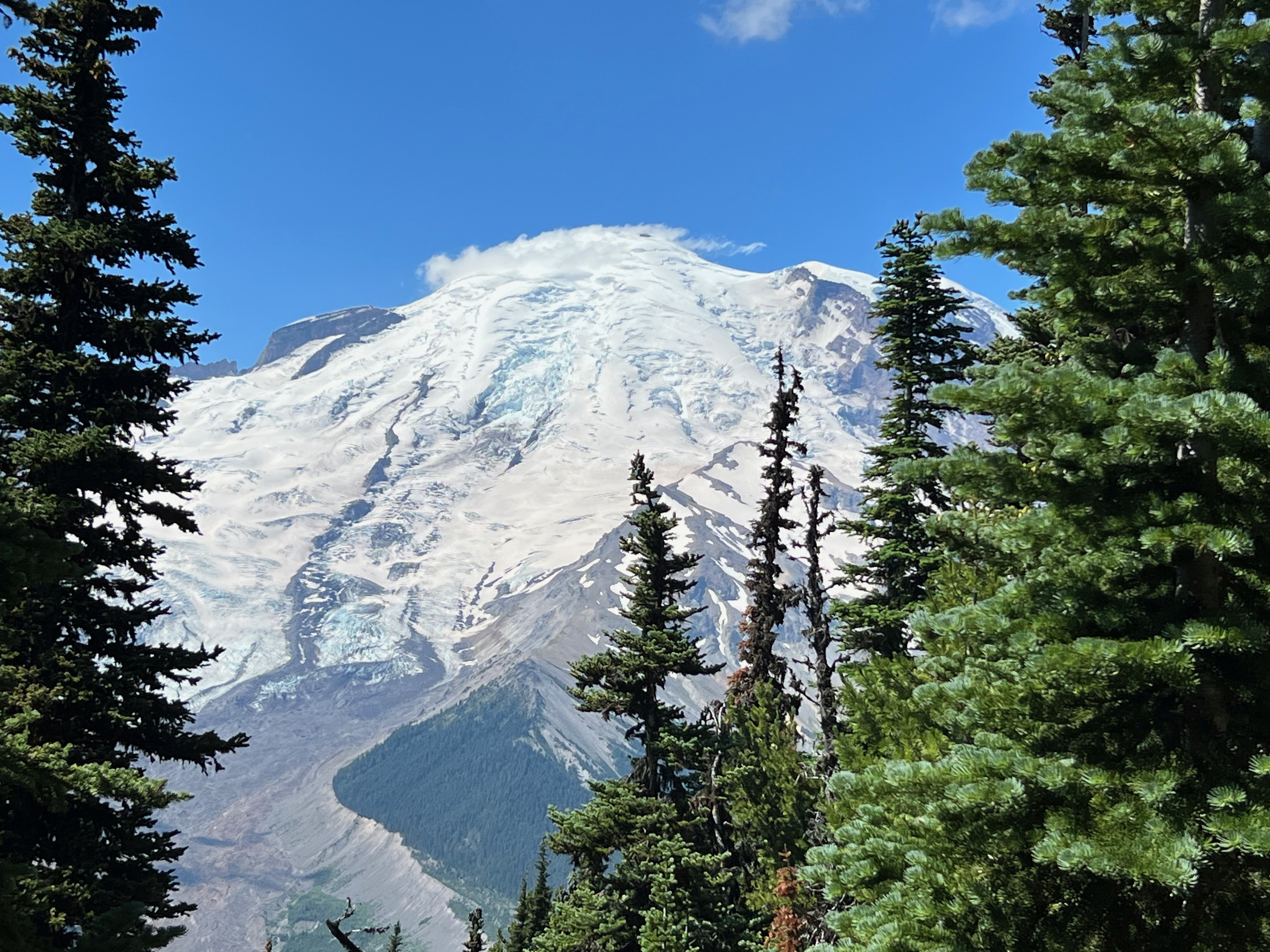 Glaciers cover all sides. I could see the blue ice of the Emmons glacier. I did two hikes that morning – half of the Sunrise Nature trail through the meadow and three-fourths of the Silver Forest trail that starts at the glacier overlook and continues on a ridge that looks out over a forest and ravine with unbelievable views of the Cascades. I thought I was in The Sound of Music and yodelers would start singing at any second. I hiked three miles – a personal best.