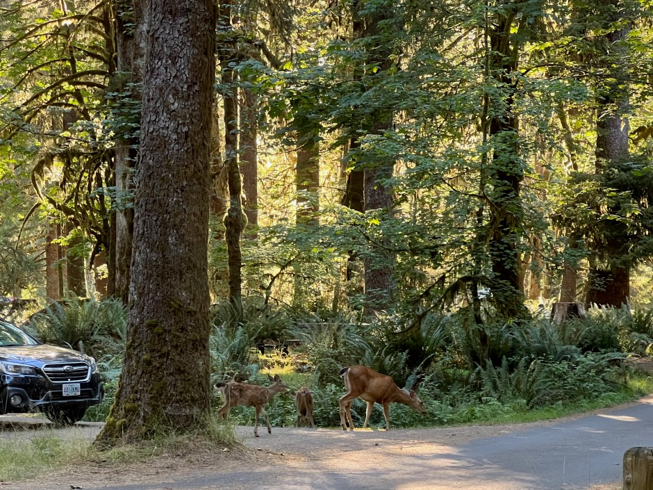 There was a bit of a heat wave on the last day there. I decided to grin and bear it and keep as cool as possible. I was rewarded when a family of deer came through the campground. First large animals I saw. Sadly, I did not see or hear the herd of Roosevelt elk. Happily, I saw no bears or cougars which only appeared on the many notices around the park and visitor center.