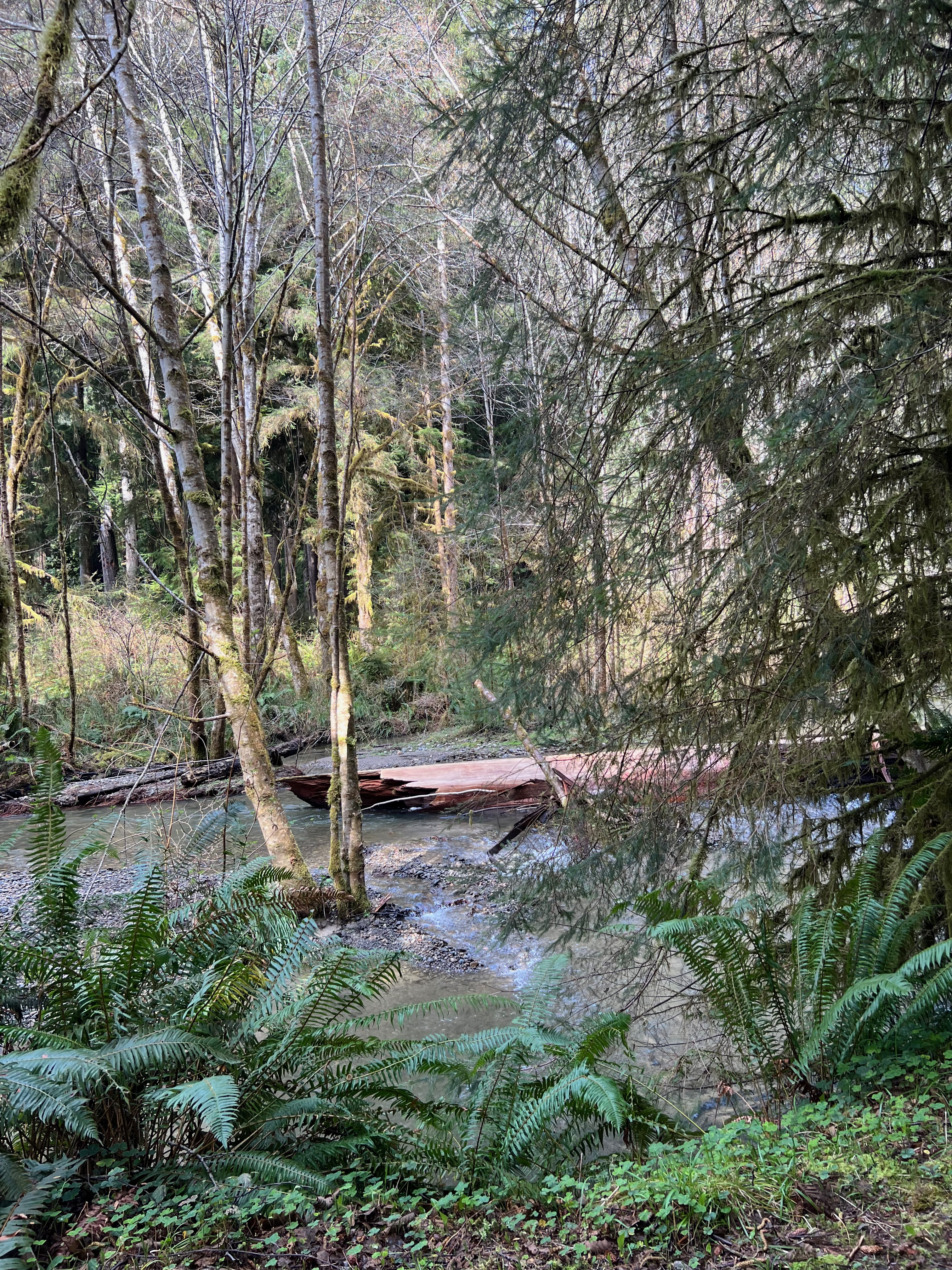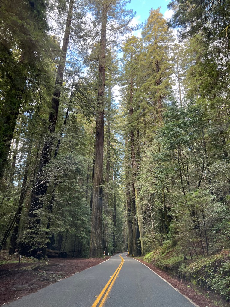 The Avenue was on my bucket list. It is where the Coast Redwoods start dominating the landscape. The Avenue is a local CA road that parallels US 101. It’s a two-lane road that winds its way for 30 miles through ancient groves of these amazing trees. Humboldt Redwoods State Park sits within this area and there are trailheads all along the roadway with parking pull-offs nearby. I stayed a couple of days in the area so I could travel the Avenue without the trailer.