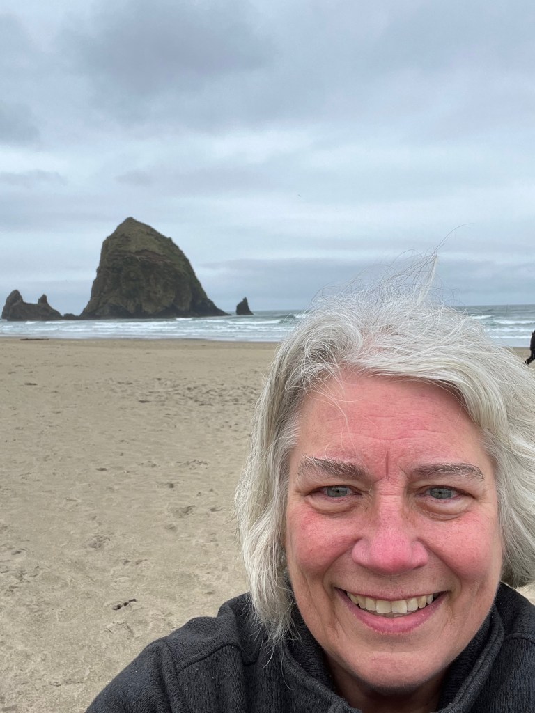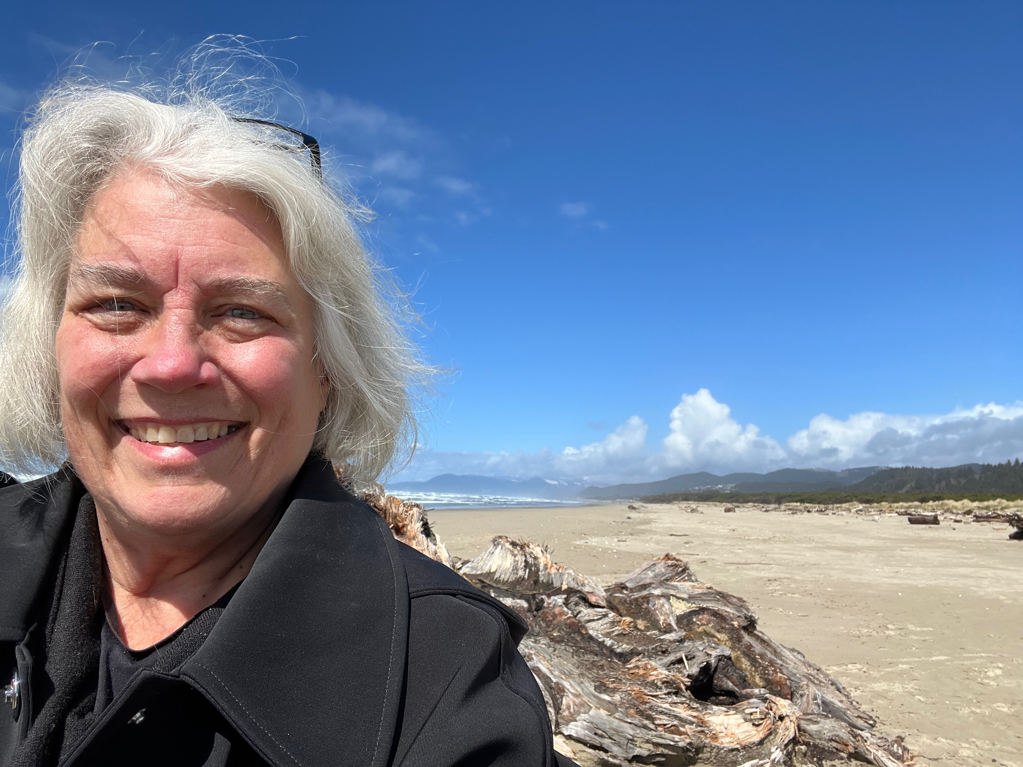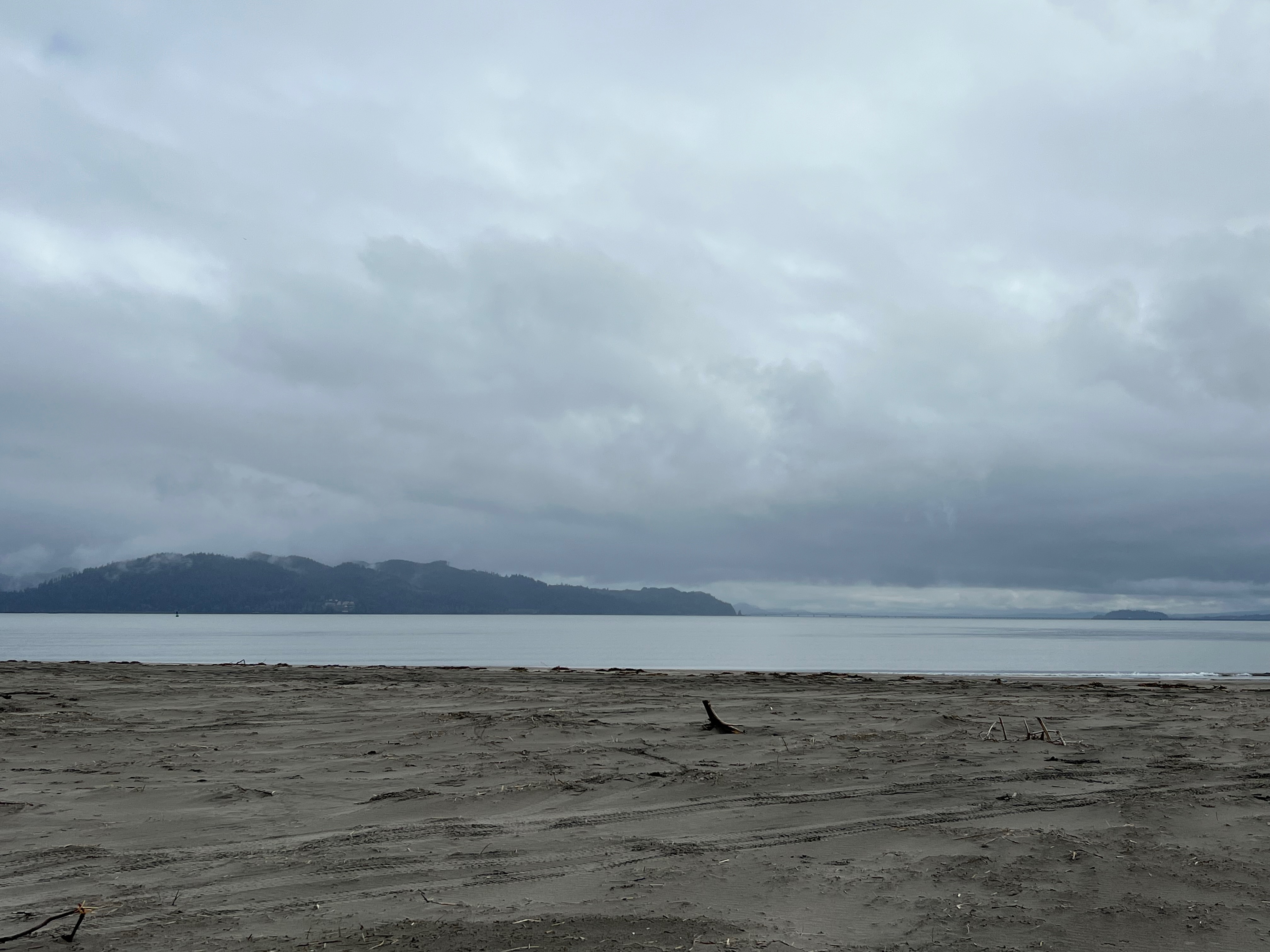 My next stop was a traditional standard, non-electric camping experience at Tillicum Campground managed by the US Forest Service. The park is on the beach and I could hear the ocean at my site on the non-ocean-front loop. Plenty of trees in the campground made it a lovely experience. Sadly, the concrete steps down to the beach ended at a pile of rocks (both staircases). Because of the rain, the rocks were wet and slippery. You have to climb over these rocks to get to the beach and I am not steady enough for that. I might have been able to use my hiking poles to anchor my position, but I had read a review online from a woman who had slipped, fell, and badly twisted her ankle. I opted to sit at the picnic tables in empty campsites and marvel at the beach. There was less rain at this stop than in previous days.