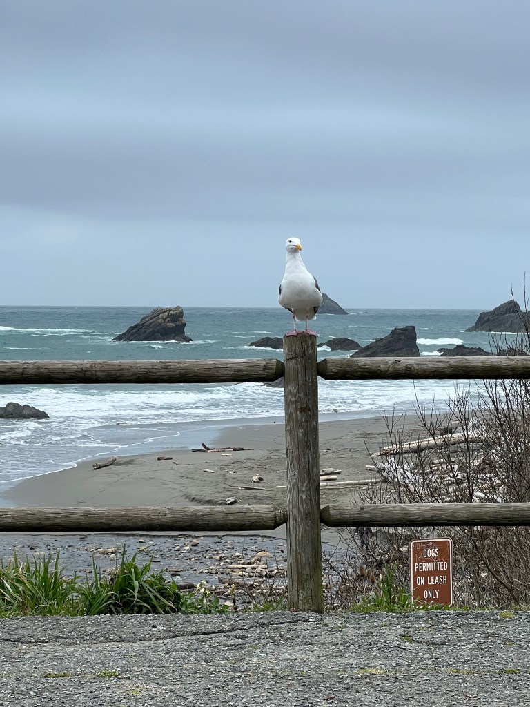 I took a day trip to Bandon, just a bit north of Langlois, to visit the Oregon Islands National Wildlife Refuge at Coquille Point. The US Forest Service manages the migratory bird and sea animal nesting spots on the rock formations along the coast and has declared them a refuge. I missed seeing the Puffins who would arrive two weeks later. There is an interpretive sign-filled paved walk along the point and marvelous coastal views. Even though it was cold, windy, and rainy, I thoroughly enjoyed this place.