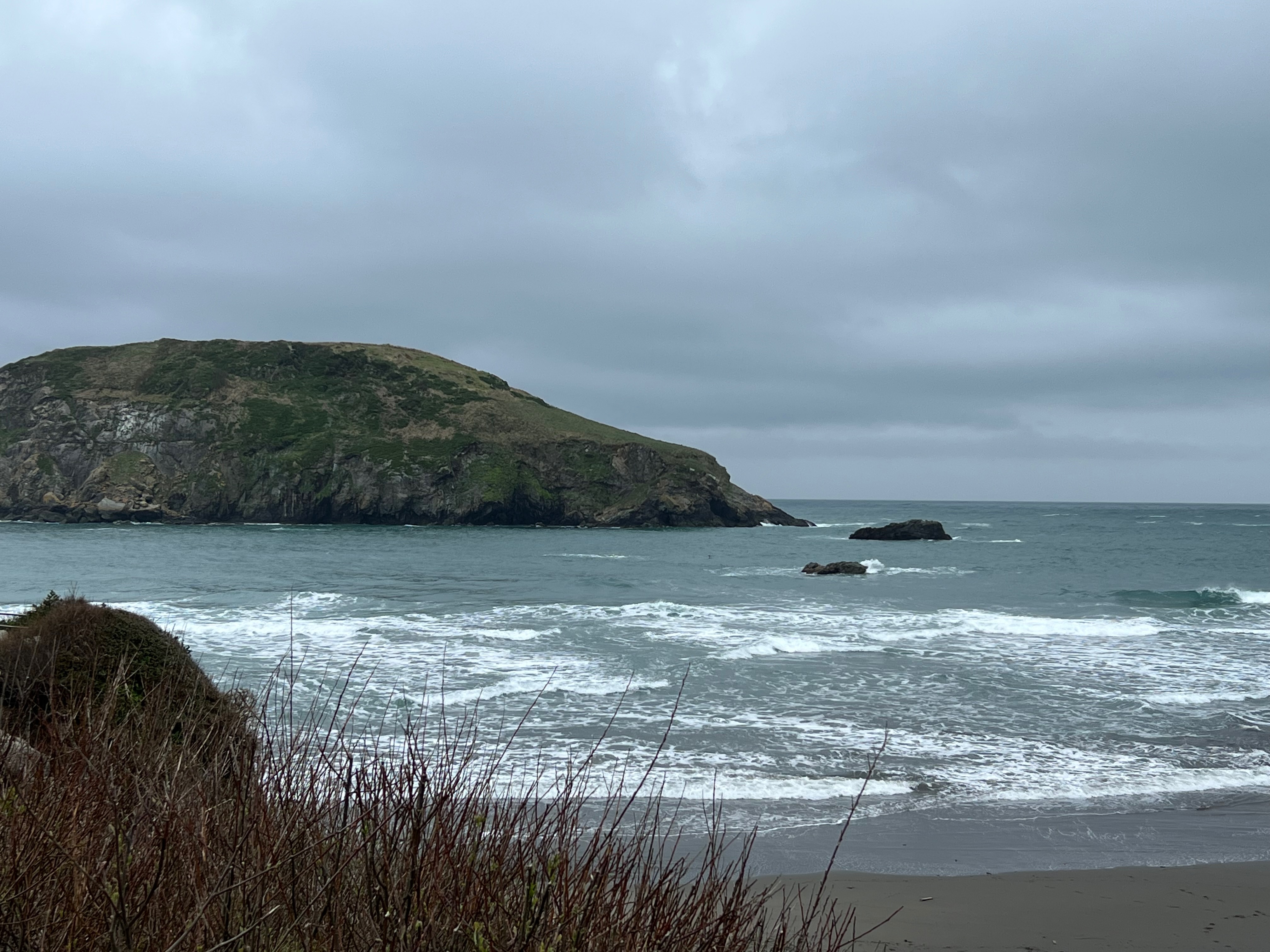 Boice-Cope County Park was my next destination near Langlois. I turned off US101 onto county roads through farms. I passed a sheep farm with a number of lambs in the field. Sadly, it was a week before Easter and as a vegan, I tried not to think about their fate. The county park sits at the coastline behind the dunes and a freshwater lake that sits higher than the ocean. Windsurfers come to this park to sail on the lake. The dunes are several stories high but there is a cut-through where the lake and ocean meet. I stepped out of my truck and could hear the ocean. I could walk fifty yards down the road and see it. I love being that close. The park hosted only a dozen spaces for RVs and had a very nice host in residence. The spaces were paved and level with water and electric hookups. The price was cheap and I settled in for what ended up being rainy days.