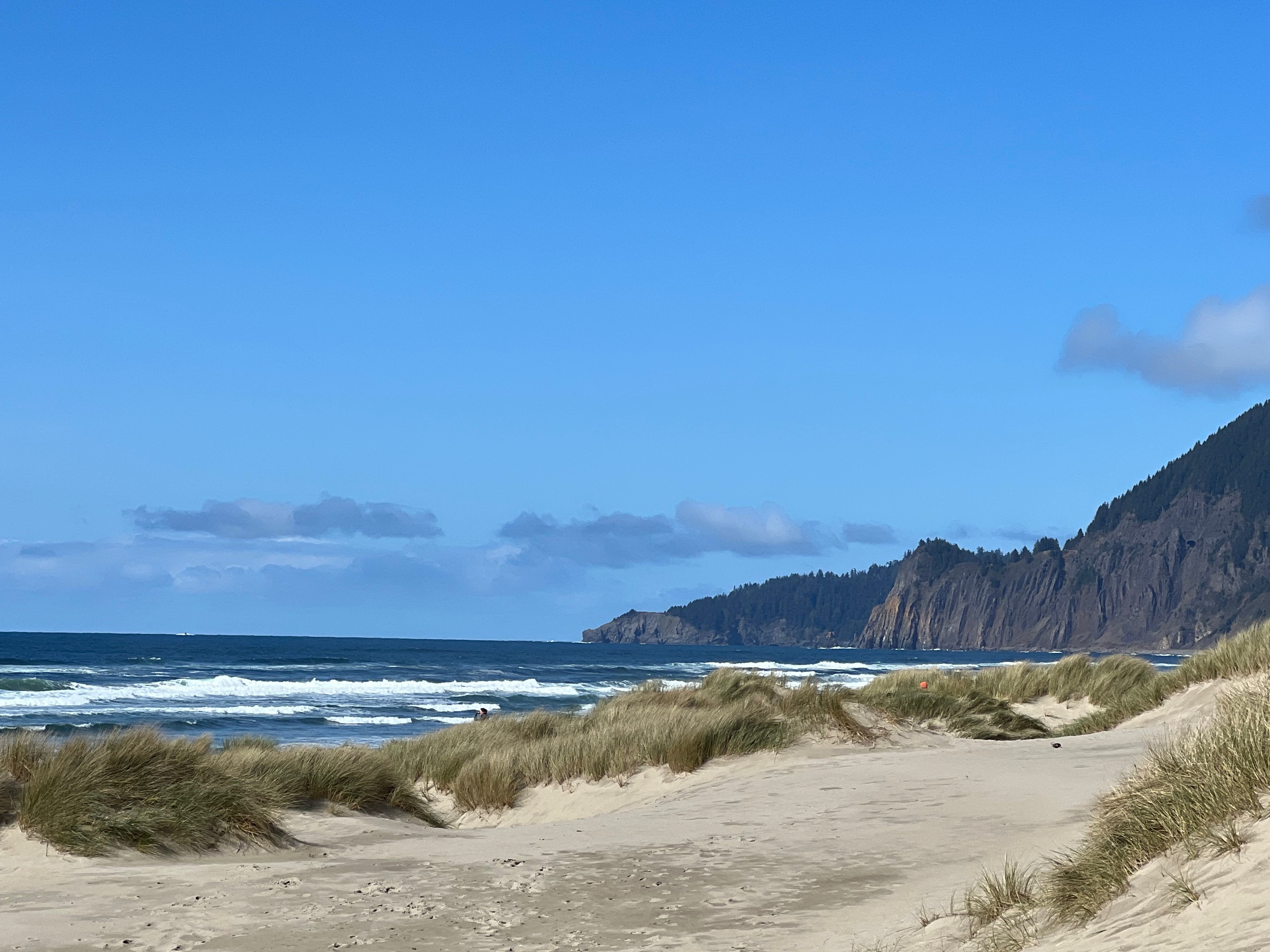 The Tillamook area was a good place to stop and catch my breath for a few days. I stayed at a county park, Bar Jetty Campground. From the day-use area, there is great beach access over the dunes with easy walking up and over, a jetty, and beautiful views of Tillamook Bay and the waves rolling in. I had some sunshine and was a happy camper while I waited for check-in time (strictly enforced!).