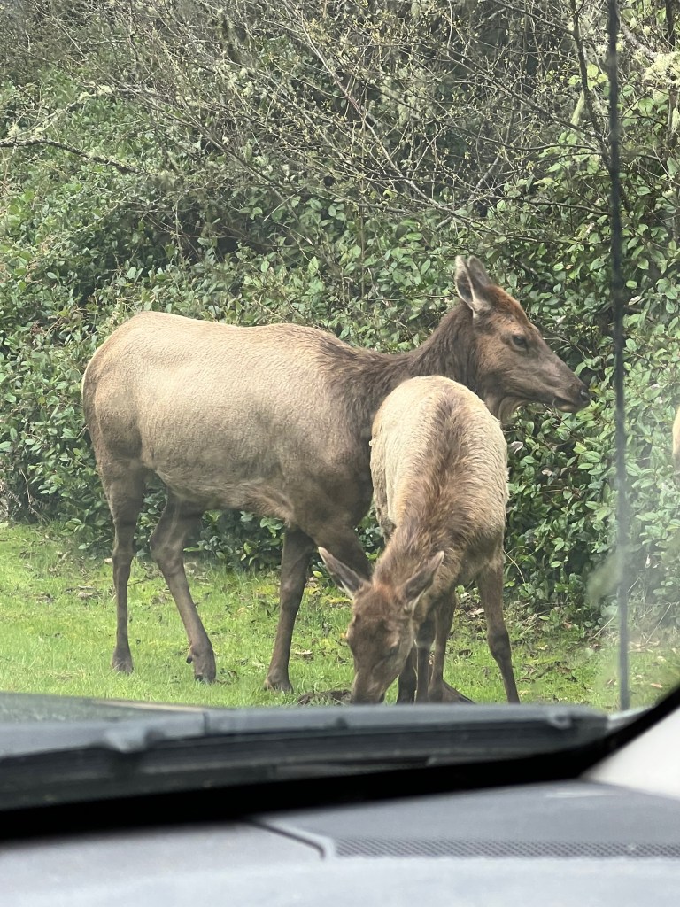 An unexpected bonus at Fort Stevens is its elk population! I saw them when I drove into the park, in the Fort Clatsop area, and finally, on my last day, I saw them at my campground loop. This time it was an all-female group, unlike the bachelor herd I saw at Elk Prairie campground in Califonia. They munched on tender new grass next to the campsites. What a treat to see these magnificent, wild creatures up close.