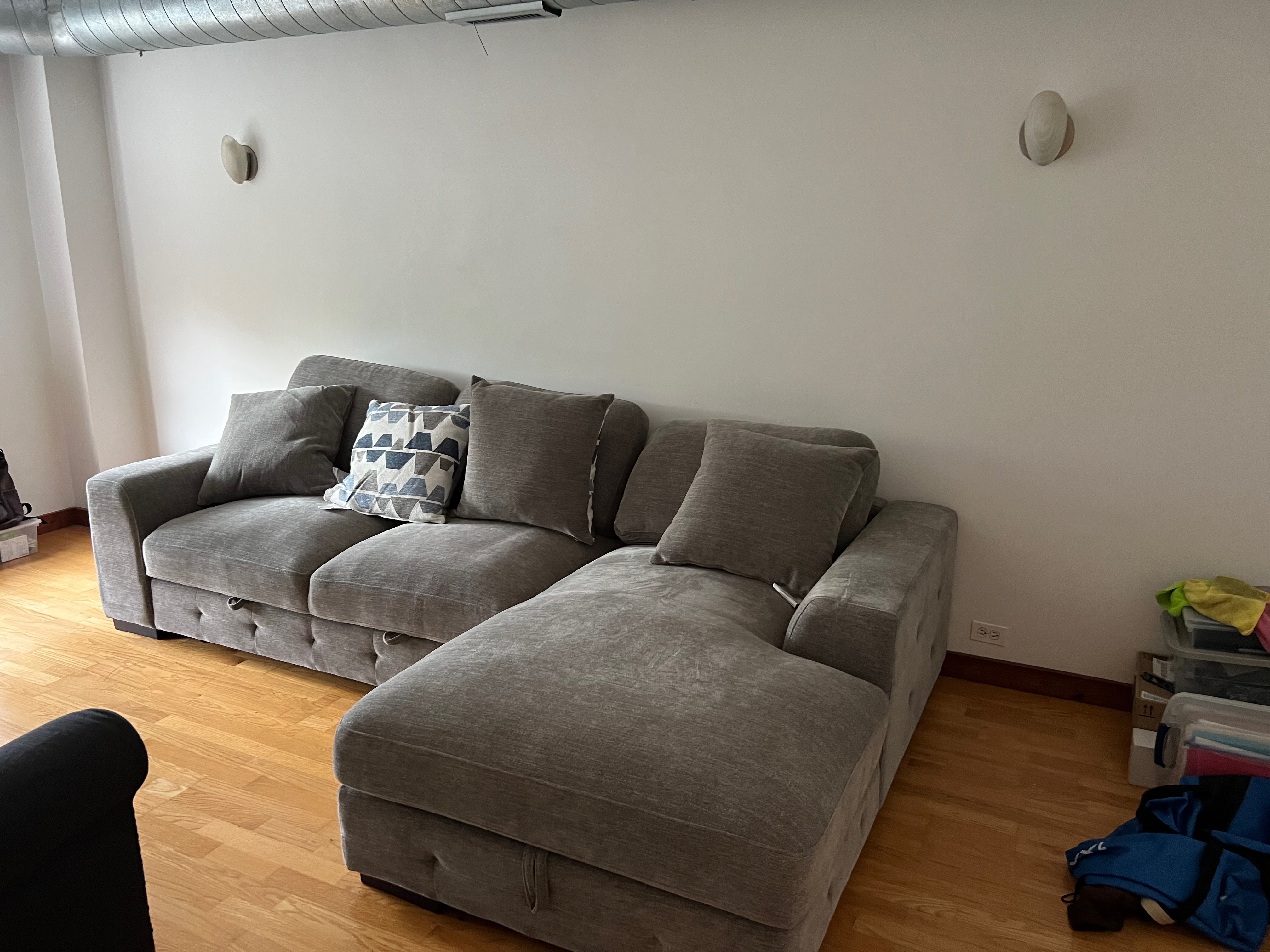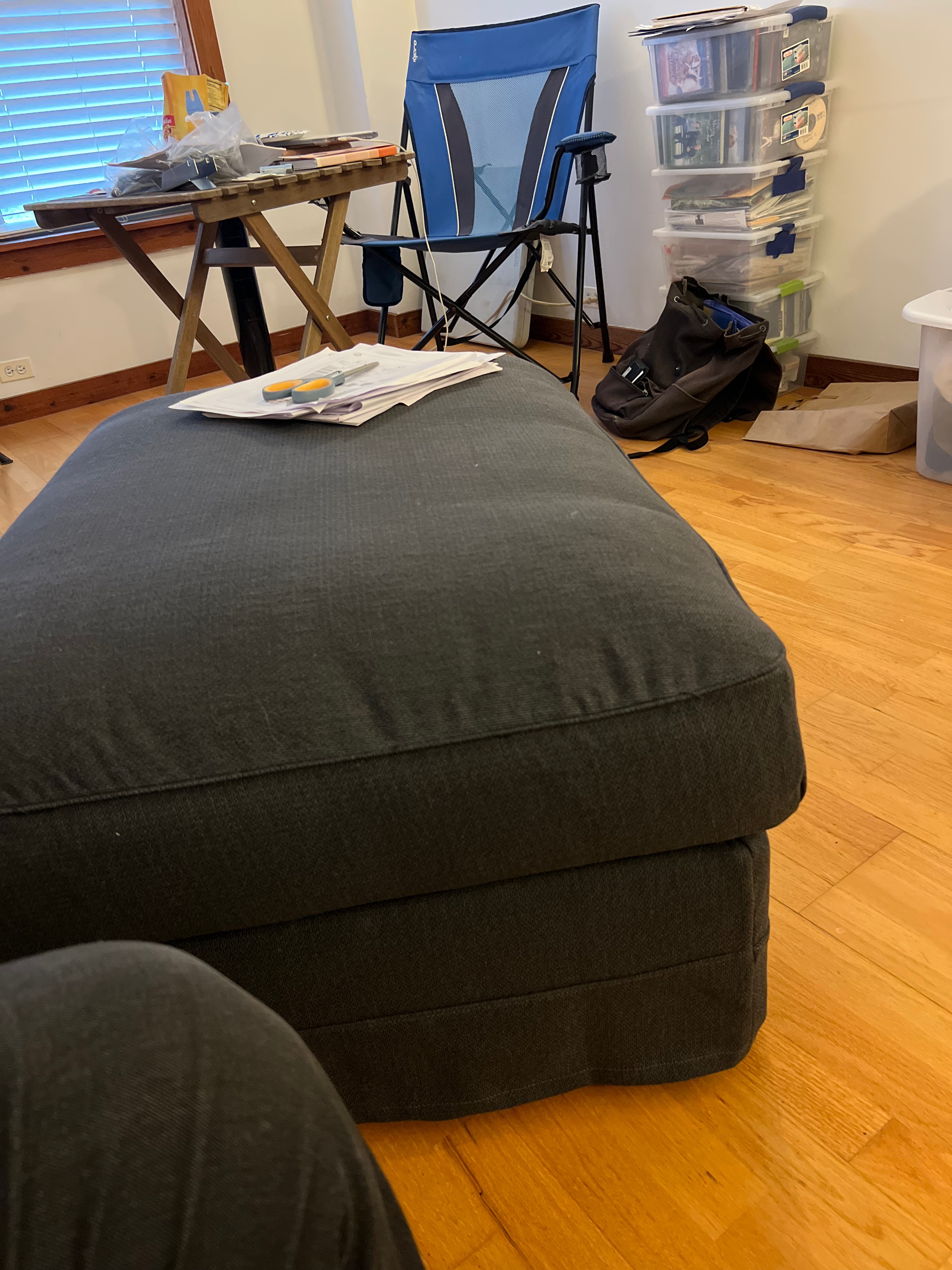 Furniture is the other major issue. I am using my camp chair and camp table as my writing space. I have a proper desk chair coming next week. My window overlooks the street and gets the morning light. I couldn’t be happier. The other furniture purchases are a bit of an issue. Remember, I had a lounge seat about 4 feet long in my Airstream. I have waaaaaay more space in this living room, so I bought a big comfy chair with a big storage ottoman. I also bought a huge couch with a chaise – also with storage, and a pop up cushion that turns the entire piece into a rectangle for lounging or sleeping. Well, they’re huge. My sense of scale thought my space was bigger and that the furniture was smaller. It’s going to be fine. There is no shortage of seating here, so plan a visit!