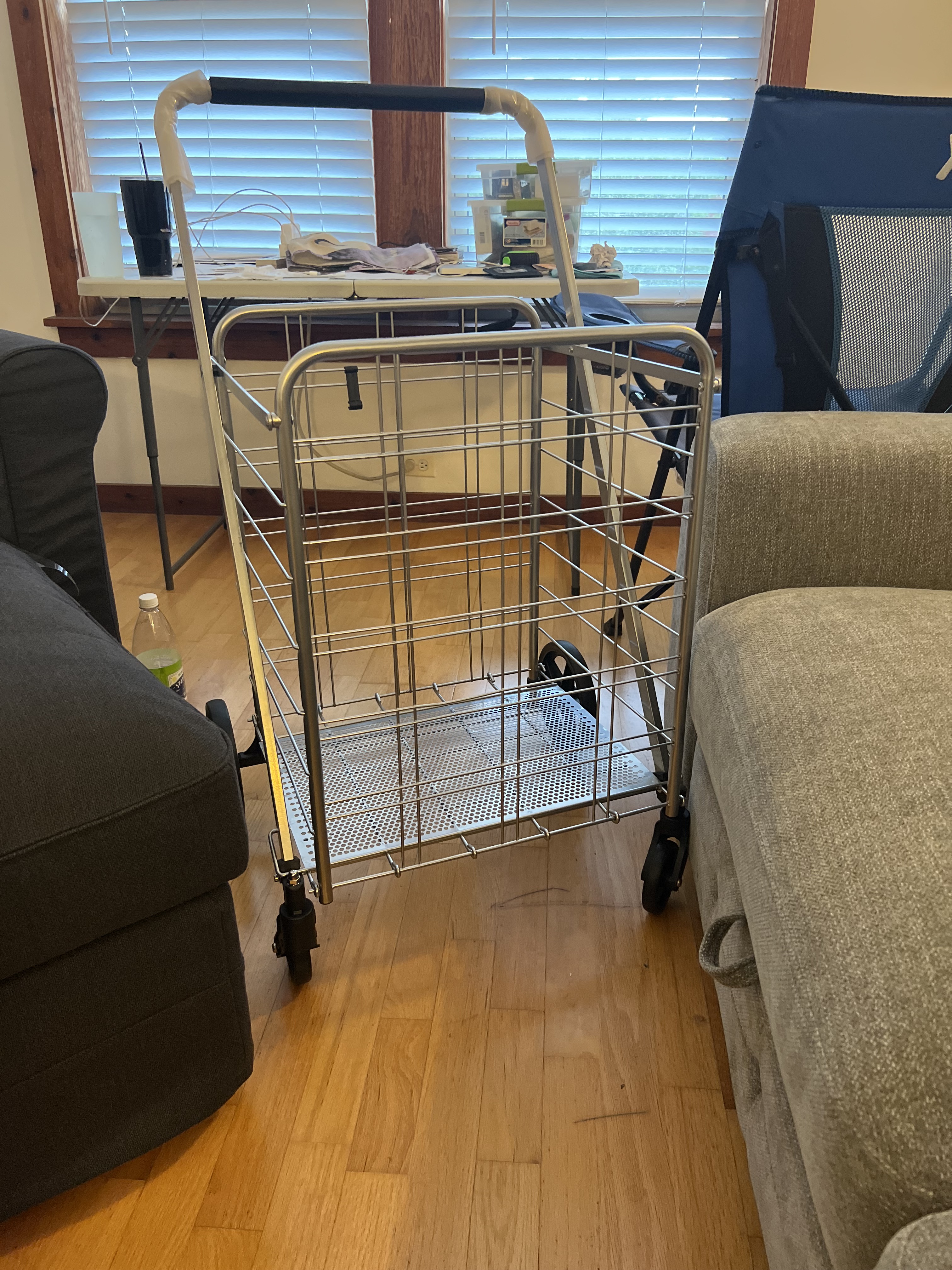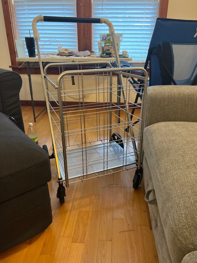 I decided that having a car, especially my big pickup truck was not going to work in a place where parallel parking is essential. I can parallel park the truck – thanks to skills I learned in Camden, NJ and Philadelphia. But I can’t do the move for street sweeping and snow plows, driving around the block a dozen times to find a spot, and hoping my catalytic converter doesn’t disappear. I sold it yesterday. It was bittersweet. I sat in that truck for 83,500 miles driving all around the country. It was a sad goodbye but a source of freedom too. I have a train (not an el) 2 blocks away that will take me to the city. I have numerous buses nearby that will take me to many different parts of the city. Within a four block walk in several directions I have Whole Foods, Target, Starbucks, Trader Joe’s, CVS and Walgreens, Ace Hardware, Office Depot and dozens of restaurants and eateries. I can’t wait to try Virtue which just won another James Beard award. It’s a couple of blocks away. One of the things I knew I would need is a cart. I can’t carry everything, so enter my bubbie cart. When I was a kid, most women had one. My mom was a trailblazer and rode a bicycle with saddle baskets. No cart for her, lol. I think my biking days are over, so I am joining the pushcart brigade.