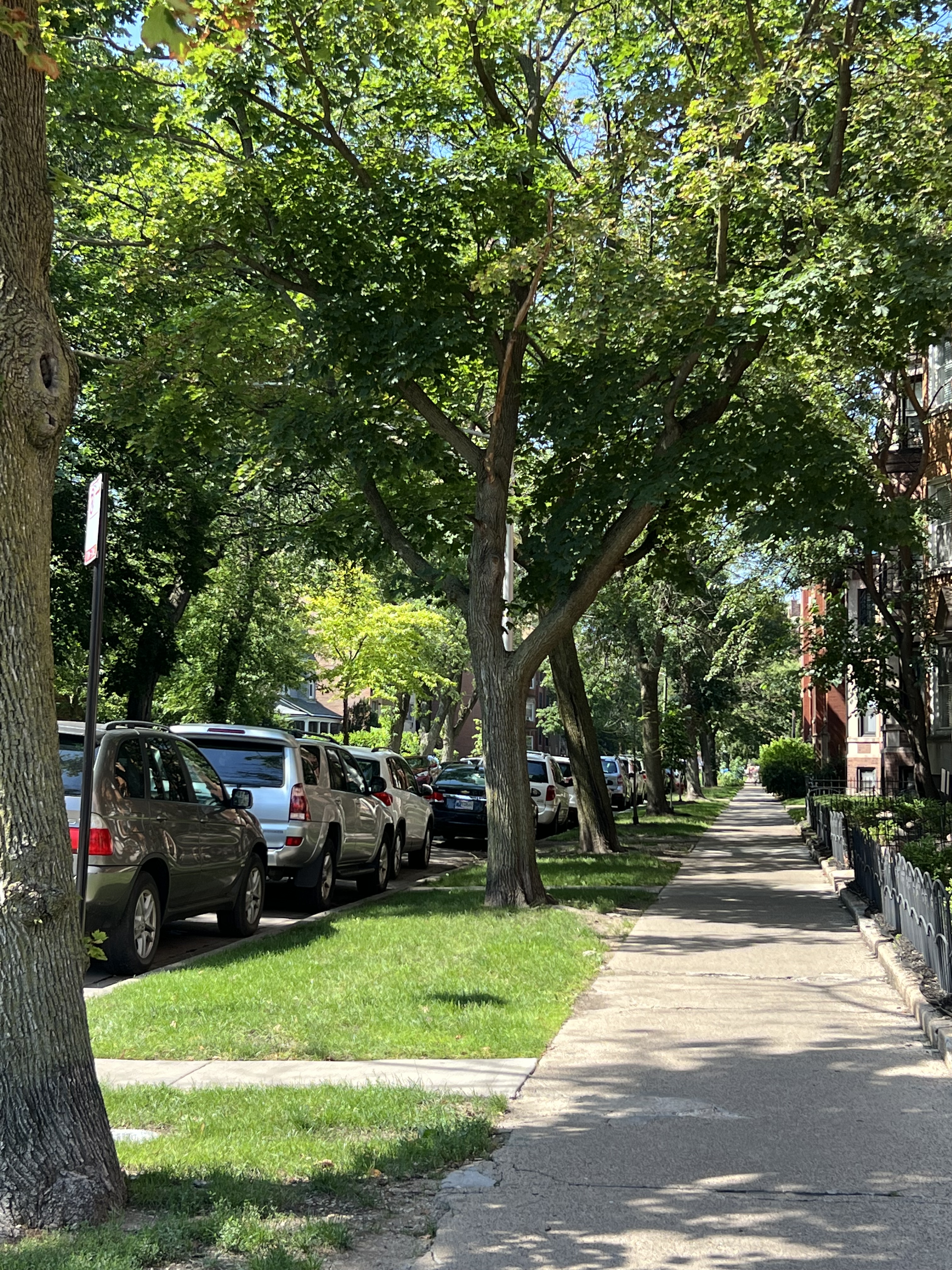 I dreamed as a young girl that I would live in Lincoln Park in one of the vintage brick courtyard apartment buildings. I found something even better. I live in Hyde Park, home to the 1892 Exposition with the White City, the Midway, and designed by Daniel Burnham. I can walk to Lake Michigan, the Museum of Science and Industry, and soon, the Obama Presidential Library. The University of Chicago is near as is Frank Lloyd Wright’s Robie House. This location combines my love of a university environment, great architecture, walkability, and amazing residential diversity. Who doesn’t love a tree-lined street? This is my street.